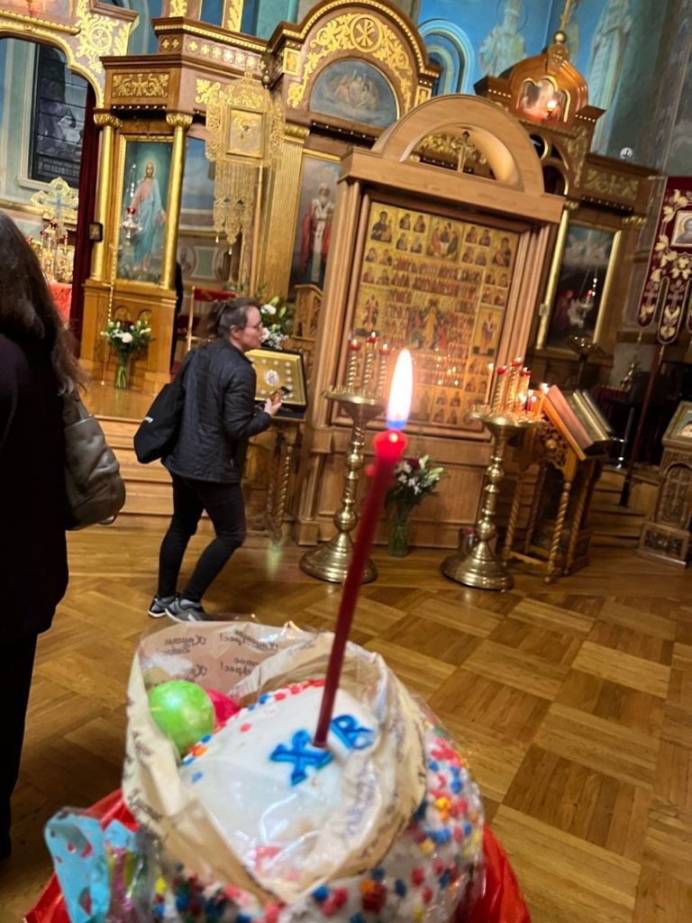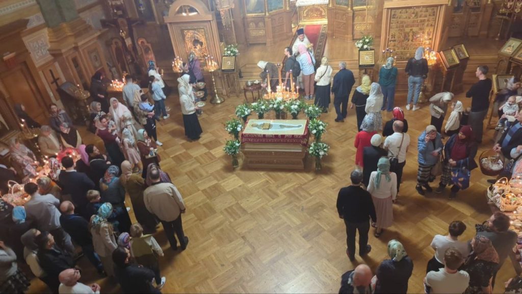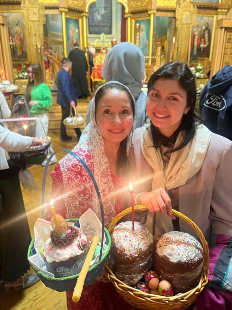 После ночного и утреннего богослужений в трапезном зале Николаевского собора для прихожан было организовано пасхальное разговение.