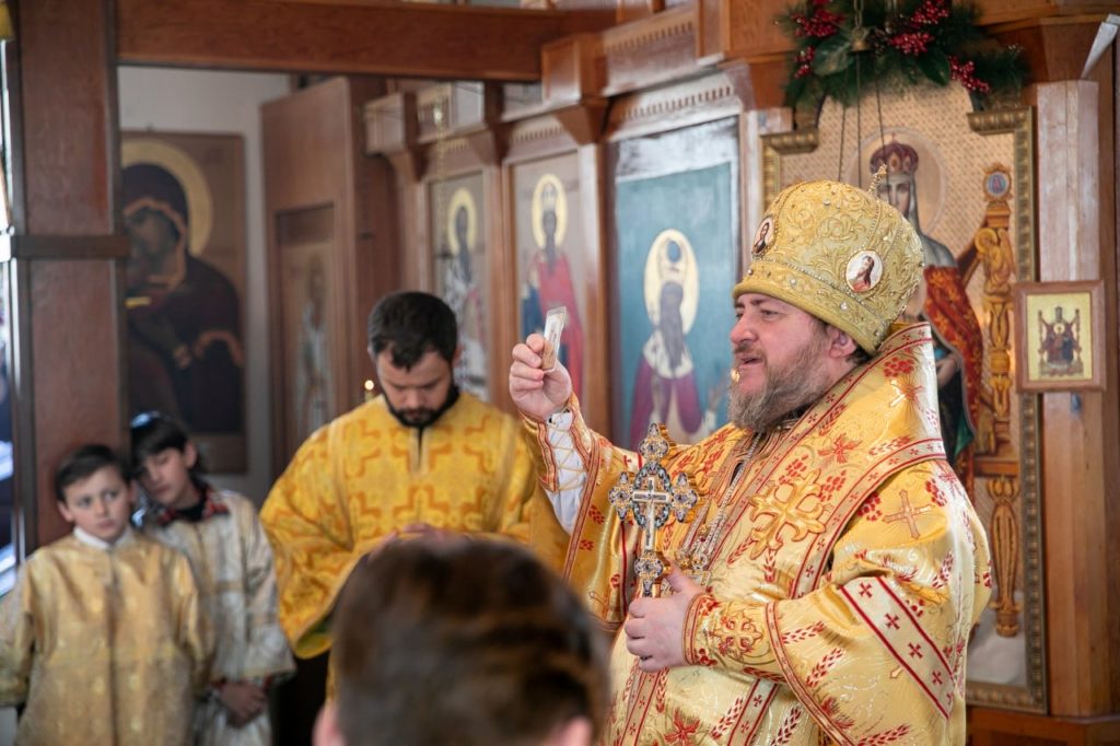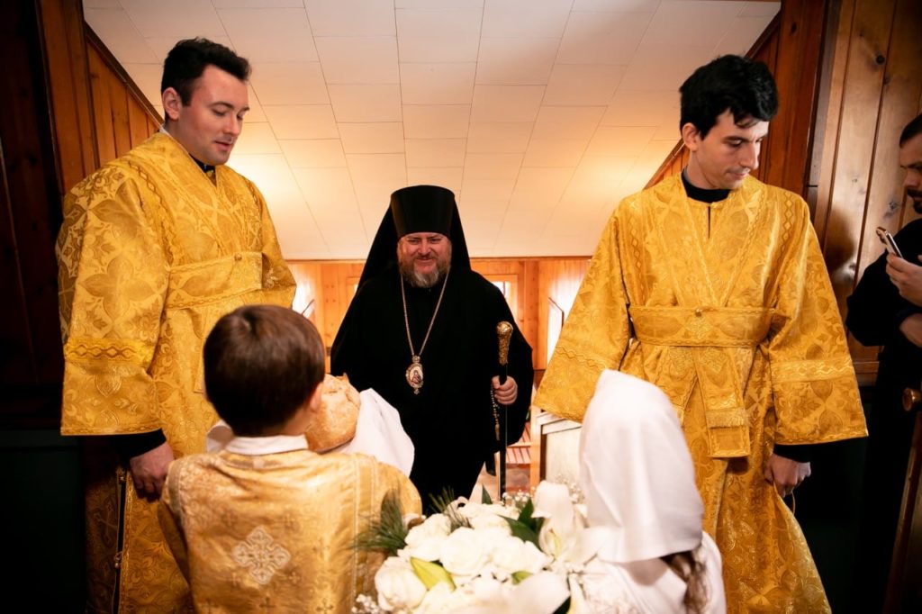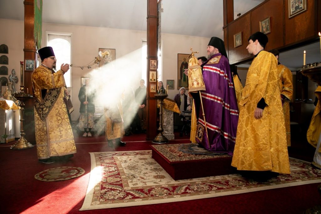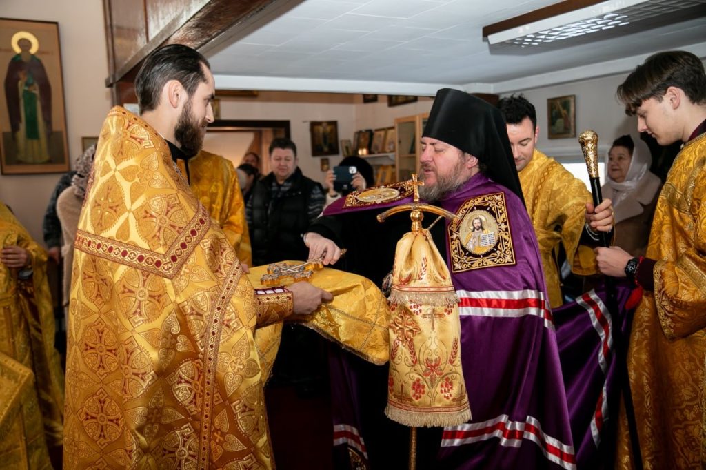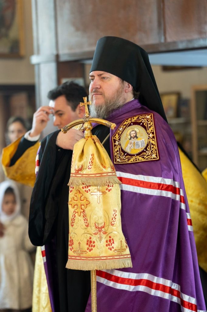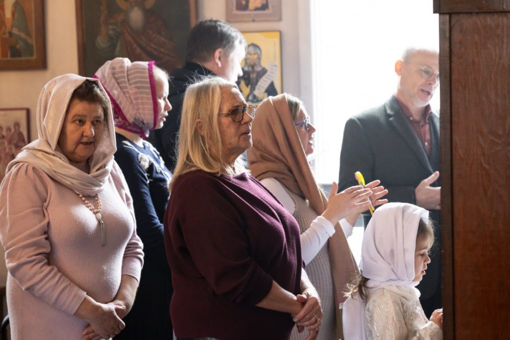 Перед входом в храм владыку хлебом-солью тепло встретили матушка Екатерина Бабийчук и матушка Ольга Куликовская и их дети. Богослужебные песнопения исполнил приходской хор под управлением Алены Бабийчук. За Литургией молились прихожане храма и гости прихода.