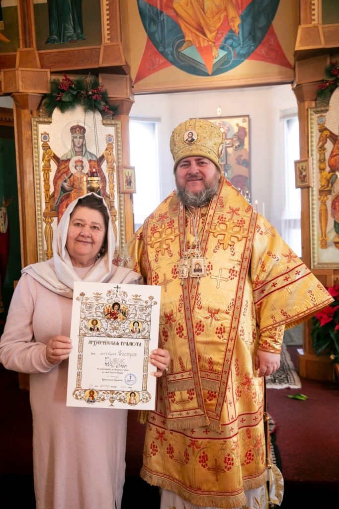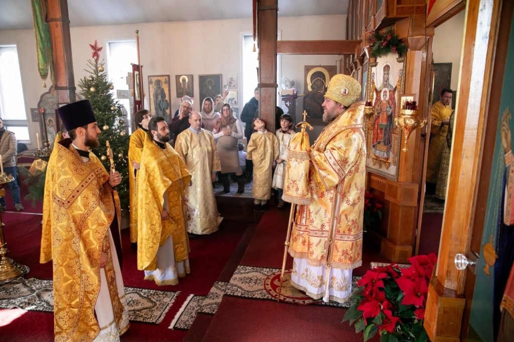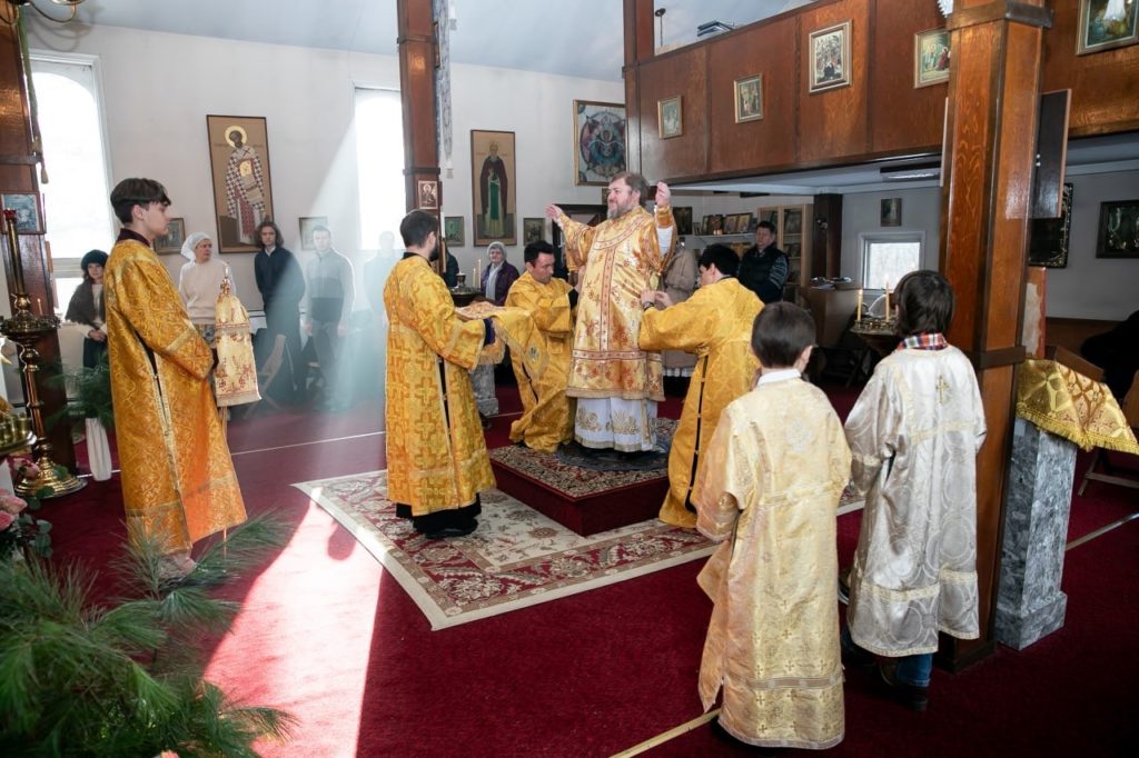 Архипастырю сослужили и.о. канцлера Патриарших приходов в США игумен Никодим (Балясников), заведующий канцелярией священник Марк Рашков, настоятель прихода священник Артемий Куликовский, клирики Николаевского собора г. Нью-Йорк священник Антоний Куракевич и диакон Алексий Голубов.