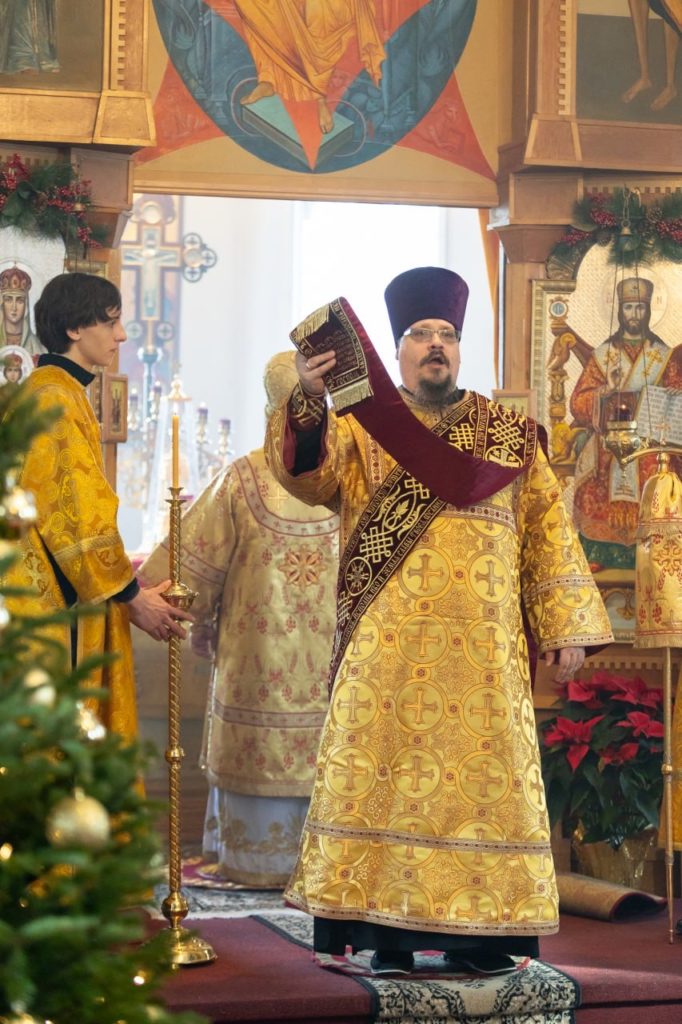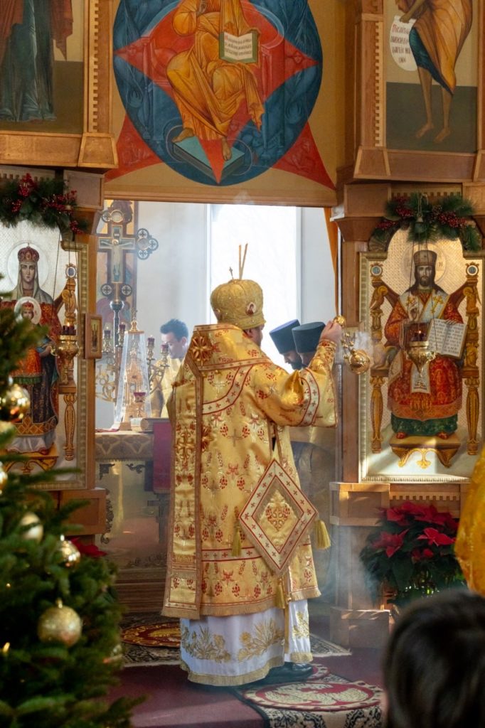 Общение архипастыря, духовенства и мирян продолжилось за братской трапезой, с любовью приготовленной матушками и их помощницами. А для всех юных участников богослужения в рамках трапезы состоялось небольшое новогоднее представление и раздача подарков.