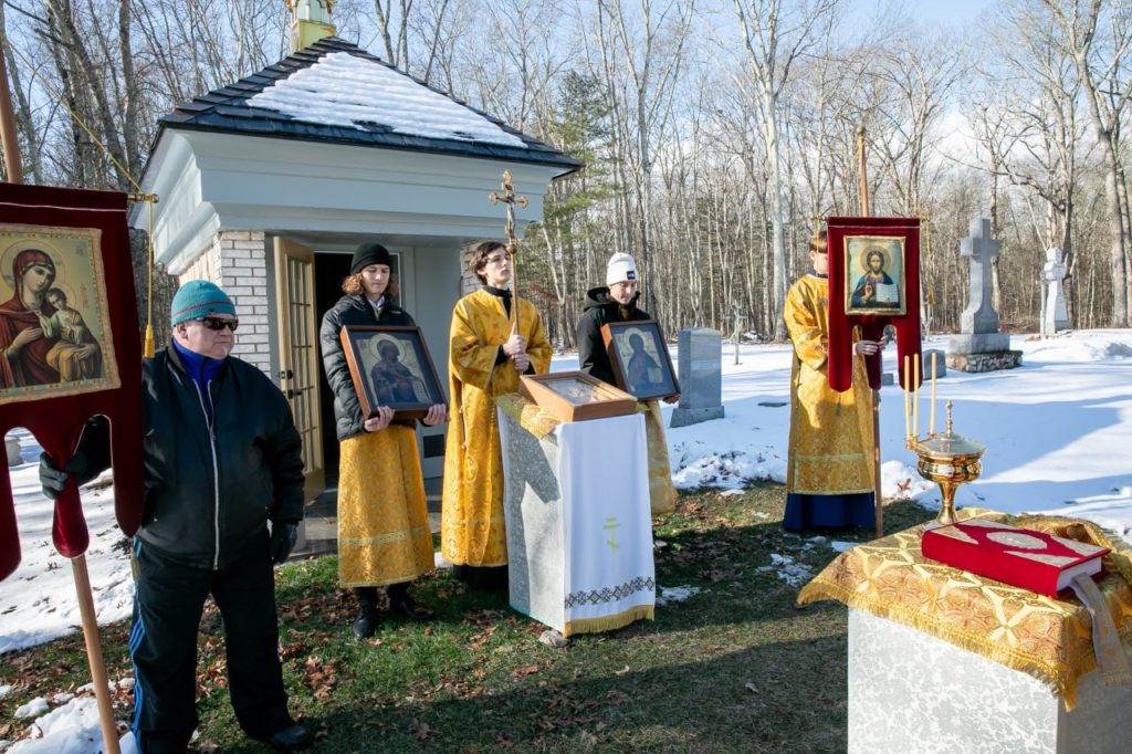 После этого духовенство и верующие прошли крестным ходом на кладбище Патриаршего имения, где, во исполнение давнего желания протоиерея Николая Бабийчука, силами настоятеля священника Артемия и его помощников в 2024–2025 гг. была сооружена часовня в честь святителя Николая Чудотворца на месте заброшенного склепа.