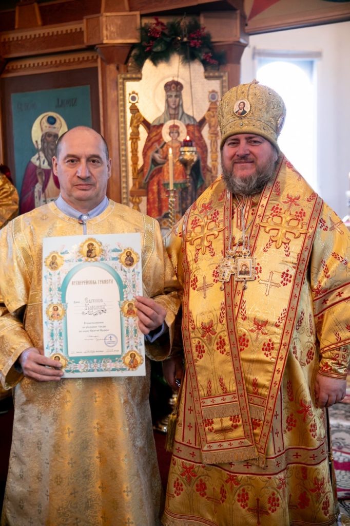 На малом входе за усердные труды по благоукрашению храма и достойному содержанию всего Патриаршего имения настоятель прихода священник Артемий Куликовский был удстоен владыкой богослужебной награды – права ношения камилавки.