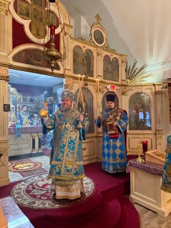 On April 5, 2025, the day of the Feast of the Laudation of the Most Holy Theotokos, His Grace Bishop Matthew of Sourozh, Temporary Administrator of the Patriarchal Parishes in the USA and Canada, celebrated the Divine Liturgy at St. Nicholas Church in Bayonne, New Jersey.