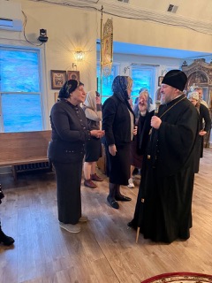 At the conclusion of the Liturgy, Bishop Matthew was warmly welcomed by the Rector, Father Michael Kapchits. His Grace then addressed the faithful with a sermon and offered congratulations on the upcoming feasts of the Annunciation of the Most Holy Theotokos and the 100th anniversary of the repose of the Enlightener of America, the Holy Confessor Tikhon, Patriarch of Moscow.