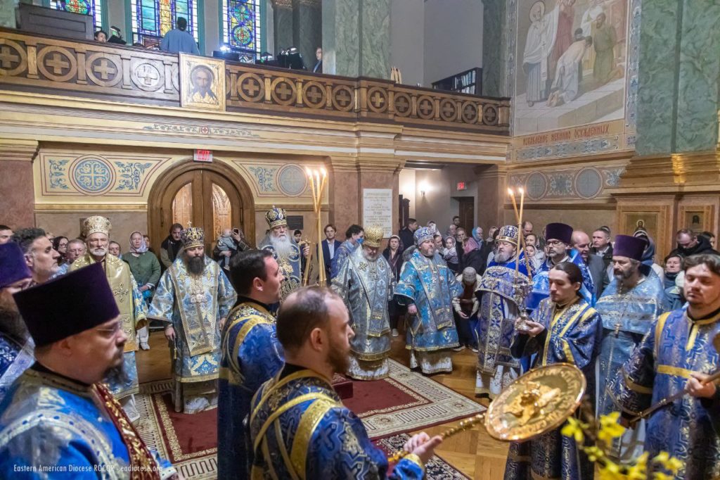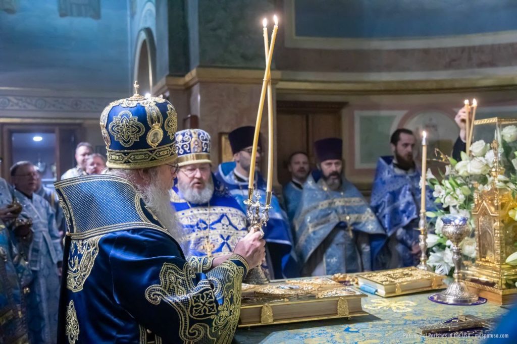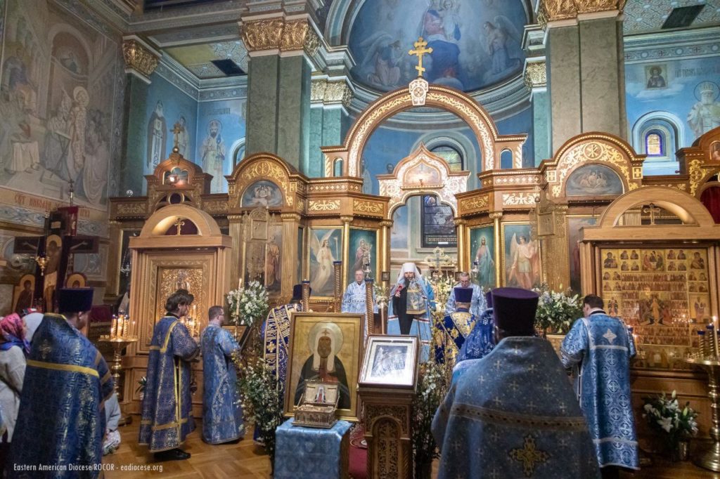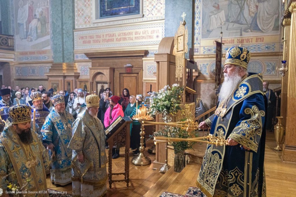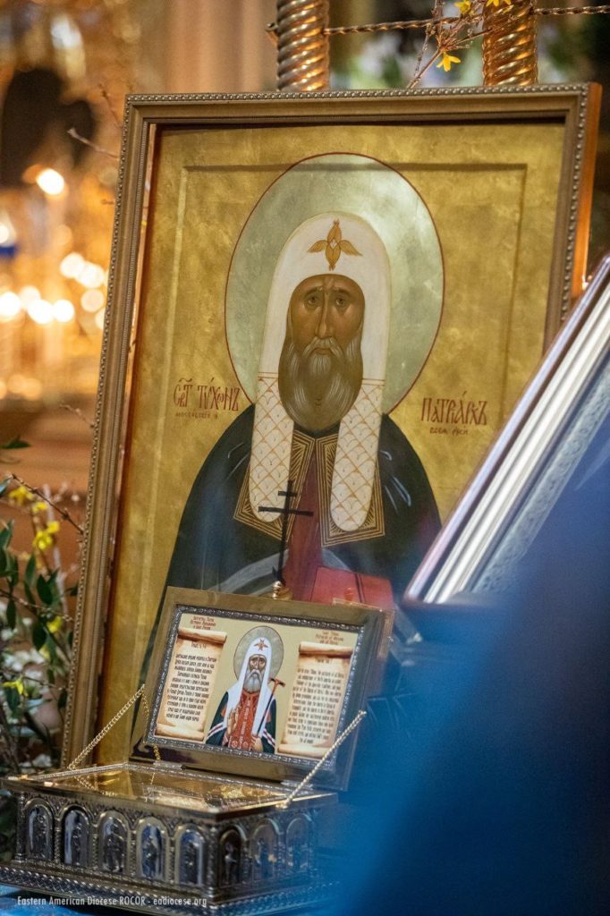By God’s mercy and the intercessions of Saint Tikhon and all the American saints, today we partake of the Holy Eucharist from the same Chalice, in unity of mind and brotherly love, and with one heart and one voice glorify the beginning of our salvation and the blessed repose of the great hierarch of the Church of Christ and our father — Saint Tikhon. I sincerely thank all of you — Your Beatitude, dear hierarchs, fathers, brothers and sisters, esteemed representatives of the Russian Federation and New York City — for this prayerful celebration, worthy of the memory of Saint Tikhon, the praise and foundation of the Orthodox Church, by whose labors we live and move today (from the Akathist to Saint Tikhon).”