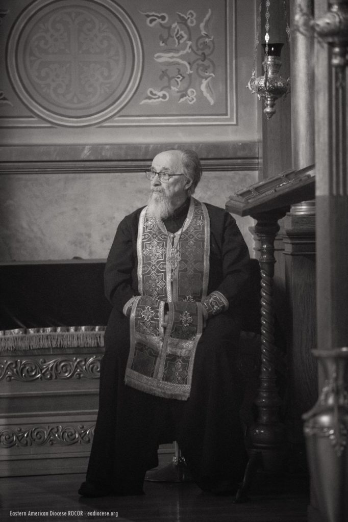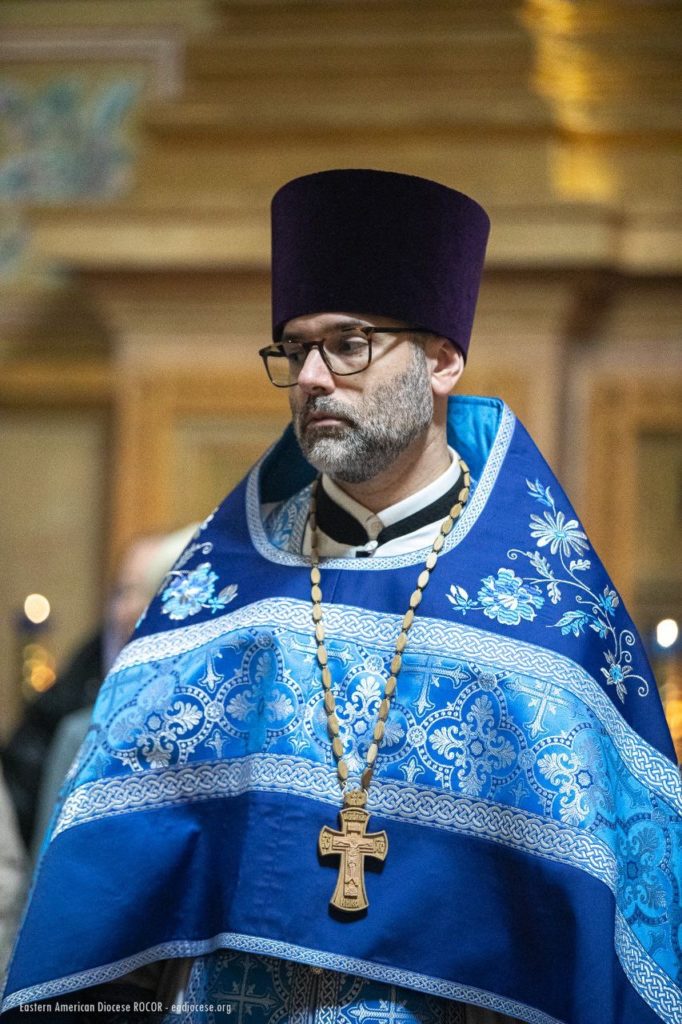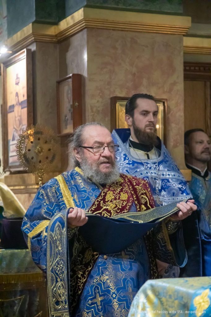 Following the Communion verse, Mitred Protopriest Georgy Konev, rector of the Church of the Three Hierarchs in Garfield, New Jersey, read the Patriarchal address on the occasion of the 100th anniversary of the blessed repose of Saint Tikhon, Patriarch of Moscow and All Russia..