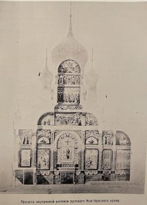 The groundwork and gathering of materials on the lost interior and paintings began at the end of the 1990s. The required reference source was found in the Library of Congress in Washington, D.C. Priest Leonid Kalinin, the head of the coordination group of experts for the reconstruction of the Church of Christ the Savior, visited America several times. During his work on these reference sources in the Library of Congress and with personal assistance of the Librarian of the Library of Congress. Dr. J. Billington, it became possible to locate some materials on the history of construction of St. Nicholas Cathedral in l900—l902. The most essential documentary information about the Cathedral was gathered from the archives of Orthodox Church in America in Syosset, New York, which is headed by A.P. Liberovsky.