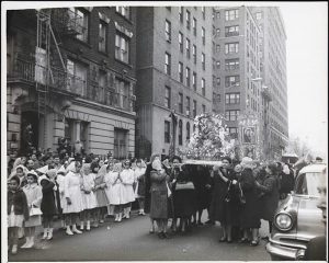 On May, 9 (22), 1901, on the feast of Transfer of the Relics of St. Nicholas the Wonderworker, a cornerstone was laid to celebrate the founding of a new church, Consecration of the cornerstone was performed by bishop Tikhon of the Aleutian Islands and North America, who was to become Patriarch of all Russia and the Confessor of the Church There was a religious procession in New York that day. Around the area of 2nd Avenue and 97th East Street in Manhattan the houses were decorated with the Russian and American flags. Thousands of believers participated. Among them were representatives of the crew of the legendary battleship "Retvizan" which had been built in Philadelphia and was to become famous during the Russo—Japanese war. The sailors donated to the future church a cross which has been kept in St. Nicholas Cathedral since then.